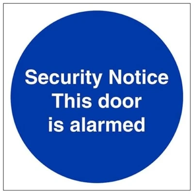 V Safety Security Notice This Door Is Alarmed 100 x mm 2mm Rigid Plastic Sign