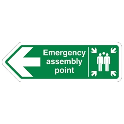 V Safety Shaped Sign Emergency Assembly Point Arrow Left 300X100 1MM Rigid Plastic