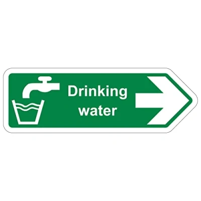 V Safety Shaped Sign Safe Drinking Water Arrow Right 450X150 2MM Rigid Plastic