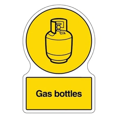 V Safety Shaped WRAP Gas Bottles 200 x 300mm Sign 1mm Rigid Plastic