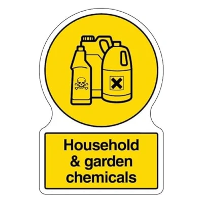 V Safety Shaped WRAP Household & Garden Chemicals 150 x 200mm Sign 2mm Rigid Plastic