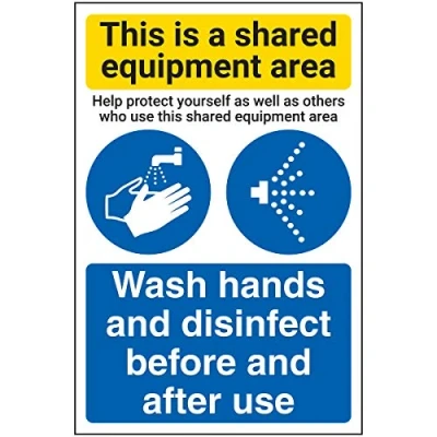V Safety Shared Equipment Area/Wash Hands And Disinfect 200mm x 300mm Self Adhesive Vinyl