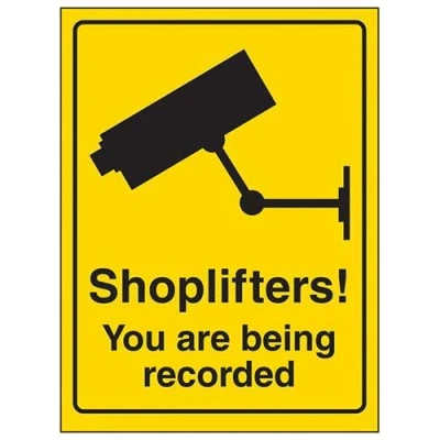 V Safety Shoplifters you Are Being Recorded Sign 200mm x 300mm Self Adhesive Vinyl