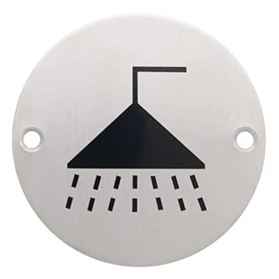 V Safety Shower Symbol, Stainless Steel, 76mm, Sign with fixings