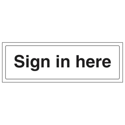 V Safety Sign In Here Landscape 300 x 100 mm Glow The Dark 1mm Rigid Plastic