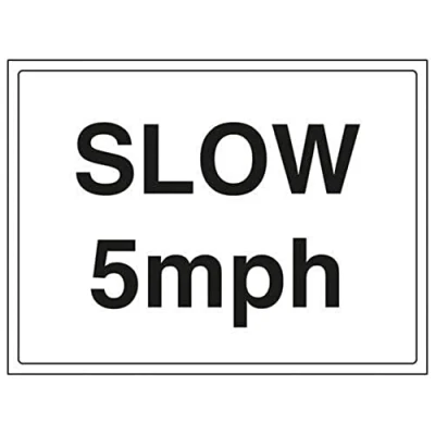 Helps to warn employees and visitors of areas where vehicles will be operating on your premises Conforms to EN ISO 7010:2012 Landscape Orientation. Sign reads "Slow 5mph" Highly durable and heavy duty 2mm rigid plastic material Sign measures 300 x 200mm