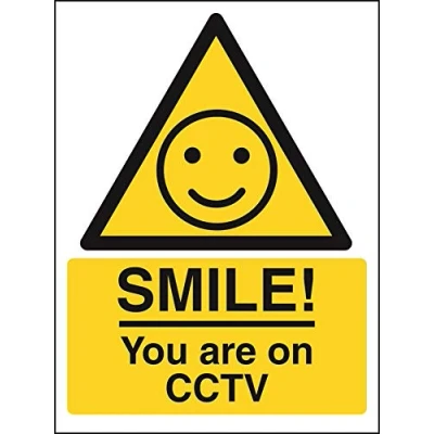 V Safety Smile! you Are On CCTV Sign 200mm x 300mm 1mm Rigid Plastic