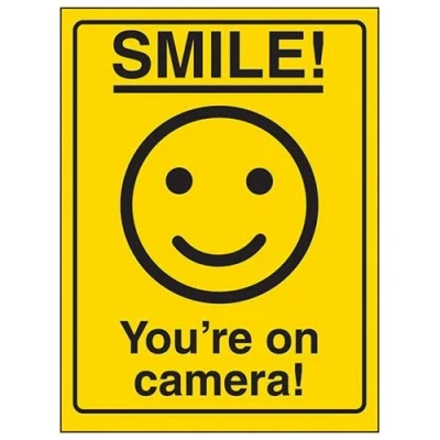 V Safety Smiley Face You're On Camera Sign 200mm x 300mm Rigid Plastic