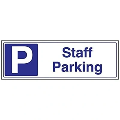 Landscape Orientation. Sign reads "Staff Parking" Highly durable 1mm plastic material and screen printed message will stand the test of time Sign measures 450 x 150mm 0 0