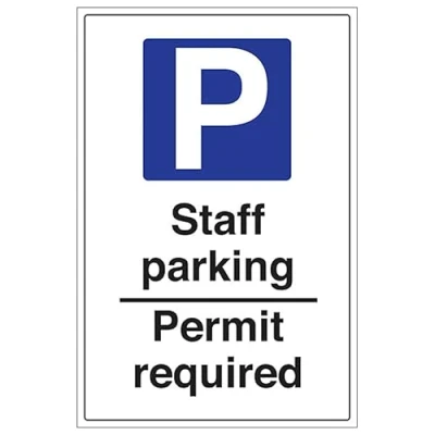 V Safety Staff Parking Permit Required Portrait 400 x 600 mm 2mm Rigid Plastic Sign
