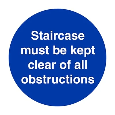 V Safety Staircase Must Be Kept Clear 100 x mm 2mm Super Tough Rigid Plastic Sign