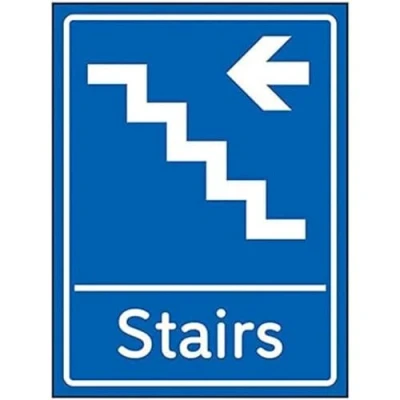 V Safety Stairs Arrow Left 150mm x 200mm Blue 1mm Rigid Plastic