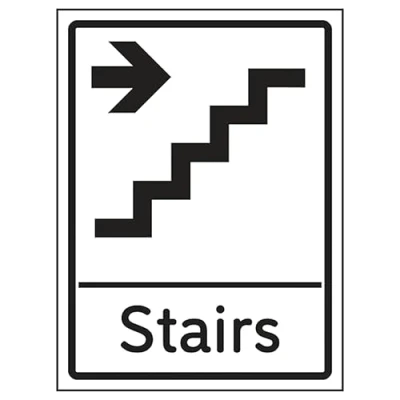 V Safety Stairs Arrow Right 200 x 300 mm 2mm Super Tough Rigid Plastic Sign