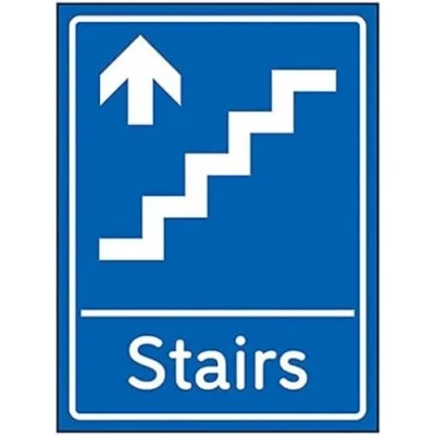 V Safety Stairs Arrow Up 150mm x 200mm Blue 1mm Rigid Plastic