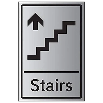 V Safety Stairs Arrow Up Sign 150 x 200 mm Self Adhesive Aluminium Effect