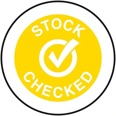 V Safety Stock Checked Yellow Sticker 50mm Diameter (Roll of 250)