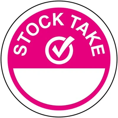 V Safety Stock Take Write On Pink Sticker 50mm Diameter (Roll of 250)