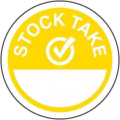 V Safety Stock Take Write On Yellow Sticker 50mm Diameter (Roll of 250)