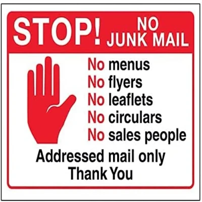 Junk Mail and Cold Caller Signs are the ideal solution for keeping unwanted post and callers away Help to prevent trespassing and junk mail and unsolicited flyers being posted Deter cold callers, religious organisations and sales people Bold enough to be effective, yet small enough to be discreet Available in self adhesive vinyl or face adhesive window stickers - perfect for internal or external use, Weight: 0.0220462262 pounds, Manufacturer: VSafety