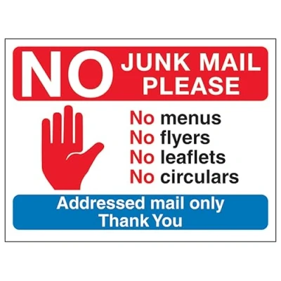 Junk Mail and Cold Caller Signs are the ideal solution for keeping unwanted post and callers away Help to prevent trespassing upon your property Prevent junk mail and unsolicited flyers being posted Deter cold callers, religious organisations and sales people High-performance glow-in-the-dark material, exceeding Class B PSBA rating. Ensure good visibility in low-light conditions.
