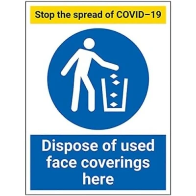 V Safety Stop The Spread Dispose Of Face Coverings 300x400mm 1mm Rigid Plastic