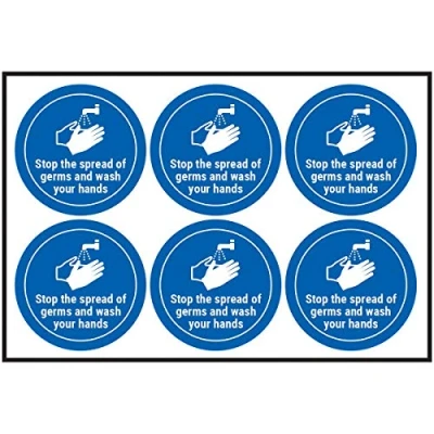 V Safety Stop The Spread of Germs and Wash Your Hands 100mm Diameter Sheet 6 Stickers