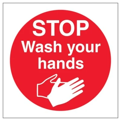 V Safety Stop Wash Your Hands Square 100 x mm Glow In The Dark 1mm Rigid Plastic Sign
