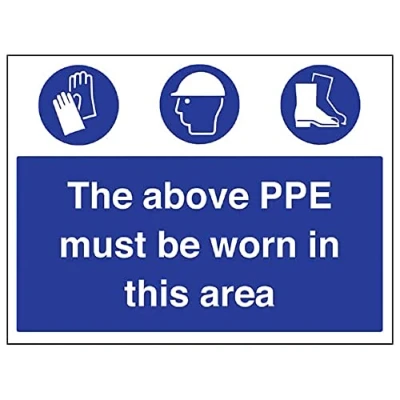 Ensure staff wear appropriate PPE at all times Helps to minimise work place accidents due to lack of protection Conforms to EN ISO 7010:2012 Highly durable – made from either durable rigid plastic or self-adhesive flexible vinyl Easy to apply – both sign types come with their own adhesive