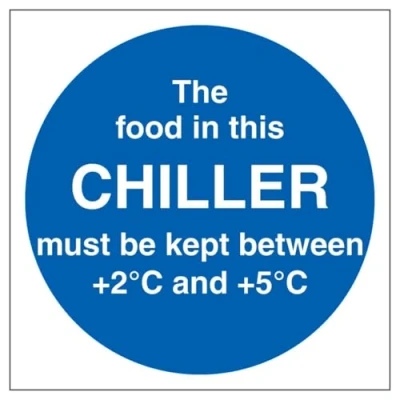 V Safety The Food In This Chiller 100 x mm 3mm Brushed Aluminium Composite Sign
