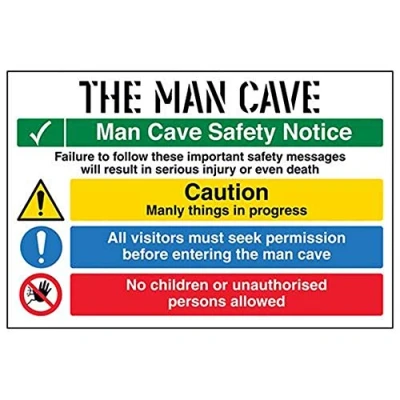 Funny novelty man cave signs, signs for dad's and the man of the house Secure adhesive allows for ease of application and will not leave permanent marks or damage if sign is removed Bold enough to be effective, yet small enough to be discreet Highly durable – made from either durable rigid plastic or self-adhesive flexible vinyl Funny novelty man cave signs, signs for dad's and the man of the house, Weight: 0.992080179 Pounds, Manufacturer: VSafety