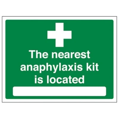 V Safety The nearest Anaphylaxis kit is located 200 x 150 mm Self Adhesive Vinyl Aluminium Effect Sign