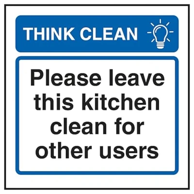 V Safety Think Clean Please Leave This Kitchen For Other Users 100 x mm 3mm Brushed Aluminium Composite Sign