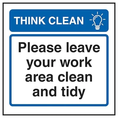 V Safety Think Clean Please Leave Your Work Area and Tidy 100 x mm 1mm Rigid Plastic Sign