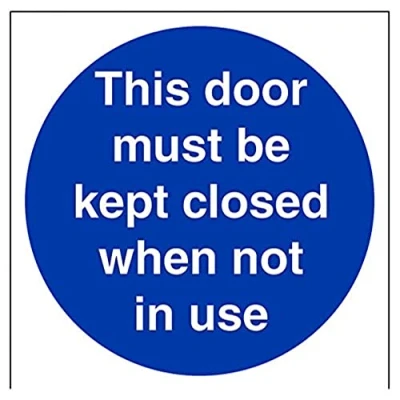 Helps to fulfil obligations to show vital escape route information about fire doors for all employees and visitors as per Health and Safety (Safety Signs & Signals) Regulations 1996 Conforms to EN ISO 7010:2012 Square Orientation. Sign reads "This Door Must Be Kept Closed When Not In Use" Highly durable 1mm plastic material and screen printed message will stand the test of time Sign measures 200 x 200mm