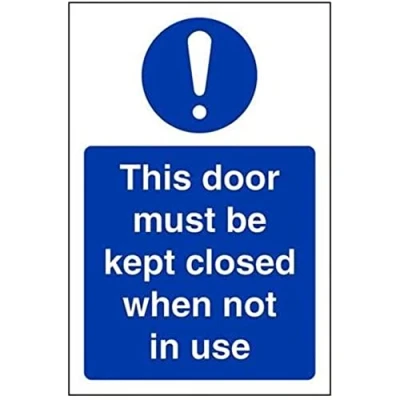 Helps to fulfil obligations to show vital escape route information about fire doors for all employees and visitors as per Health and Safety (Safety Signs & Signals) Regulations 1996 Conforms to EN ISO 7010:2012 Portrait Orientation. Sign reads "This Door Must Be Kept Closed When Not In Use" Highly durable 1mm plastic material and screen printed message will stand the test of time Sign measures 100 x 150mm