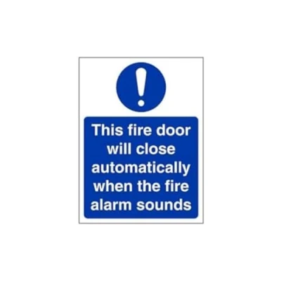 Helps to fulfil obligations to show vital escape route information about fire doors for all employees and visitors as per Health and Safety (Safety Signs & Signals) Regulations 1996 Conforms to EN ISO 7010:2012 Portrait Orientation. Sign reads "This Fire Door Will Close Automatically When The Fire Alarm Sounds" Highly durable 1mm plastic material and screen printed message will stand the test of time Sign measures 150 x 200mm