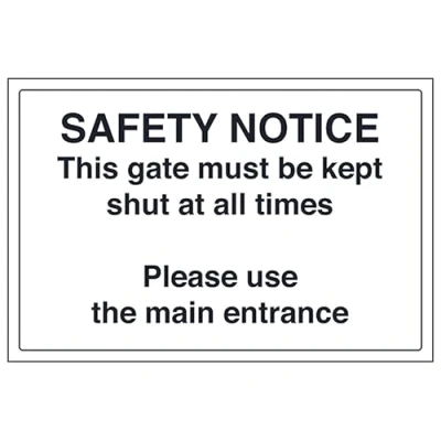 V Safety This Gate Must Be Kept Shut At All Times 300 x 200 mm 2mm Super Tough Rigid Plastic Sign