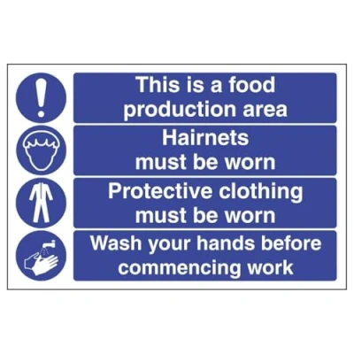 V Safety This Is A Food Production Area Hairnets 300 x 200 mm Glow In The Dark 1mm Rigid Plastic Sign