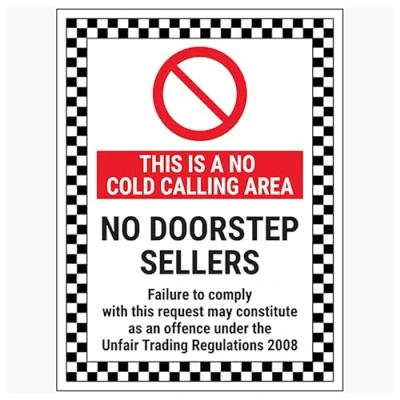 V Safety This Is A No Cold Calling Area/No Doorstep Sellers/Failure To Comply 200 x 300 mm 3mm Brushed Aluminium Composite Sign