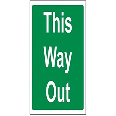 Helps to fulfil legal obligations to inform of the direction in which safety can be reached as per Health and Safety (Safety Signs & Signals) Regulations 1996 Conforms to EN ISO 7010:2012 by featuring a green background with a white pictogram or text positioned centrally Square Orientation. Sign reads "This Way Out" Highly durable Self Adhesive Vinyl material and screen printed message will stand the test of time Sign measures 150 x 150mm. Self Adhesive material will adhere securely to most surfaces