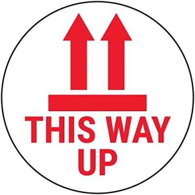 V Safety This Way up Red Sticker 50mm Diameter (Roll of 250)