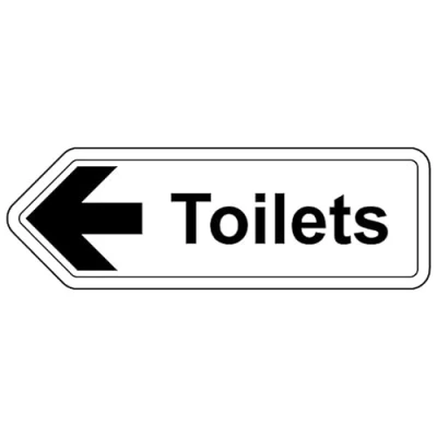 V Safety Toilets Arrow Left Shaped Sign 300 x 100 mm Self Adhesive Vinyl Aluminium Effect