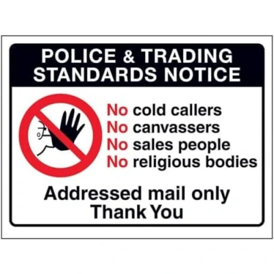 Junk Mail and Cold Caller Signs are the ideal solution for keeping unwanted post and callers away Help to prevent trespassing and junk mail and unsolicited flyers being posted Deter cold callers, religious organisations and sales people Bold enough to be effective, yet small enough to be discreet Available in self adhesive vinyl or face adhesive window stickers - perfect for internal or external use, Weight: 0.0220462262 Pounds, Manufacturer: VSafety