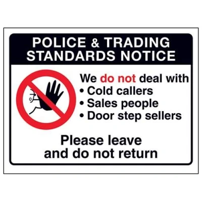 V Safety Trading Standards: We Do Not Deal with Door Sellers Sign 150mm x 100mm Self Adhesive Vinyl