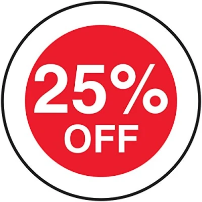 V Safety Twenty Five Off Sticker 50mm Diameter (Roll of 250)