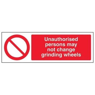 V Safety Unauthorised Persons May Not Change Grinding Wheels Sign 300mm x 100mm Self Adhesive Vinyl
