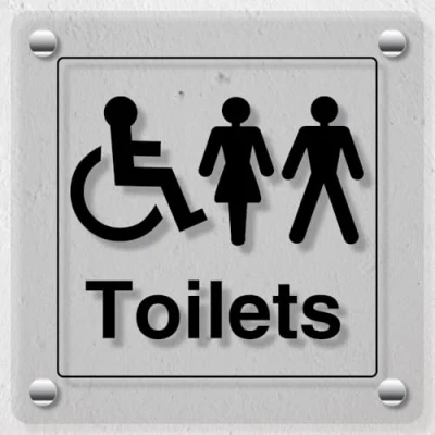 V Safety Unisex and Disabled Toilet 150 x mm Acrylic Perspex Cast Clear Sign