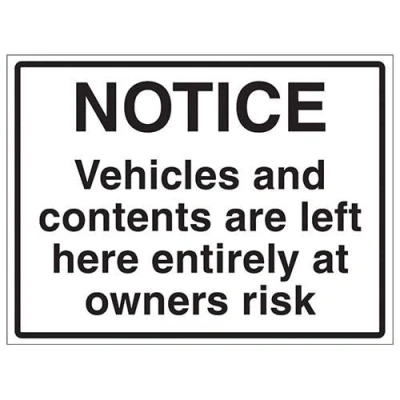 Vehicle and Contents Left At Owners Risk 3mm AluComp RA1 AntiGraff 600x450mm