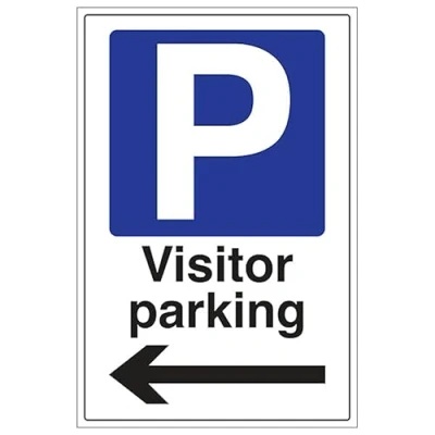 V Safety Visitor Parking Arrow Left Portrait 400 x 600 mm 3mm Reflective Aluminium Composite Sign