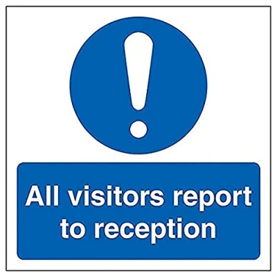 V Safety Visitors Report To Reception 150mm x Self Adhesive Vinyl
